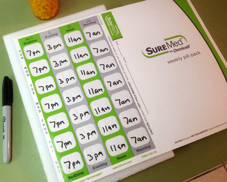 These cards make my mum more confident and independent. At a glance the card reminds her when she needs to take her medication and which med to take. I can also quickly check to see that the medication was taken. I assemble mum’s card on Saturday each week and it literally takes me only a few minutes to do. Since her medications rarely change I could actually do 2 or 3 weeks of cards at one time if I wanted to, but I enjoy the time I spend with my mother.