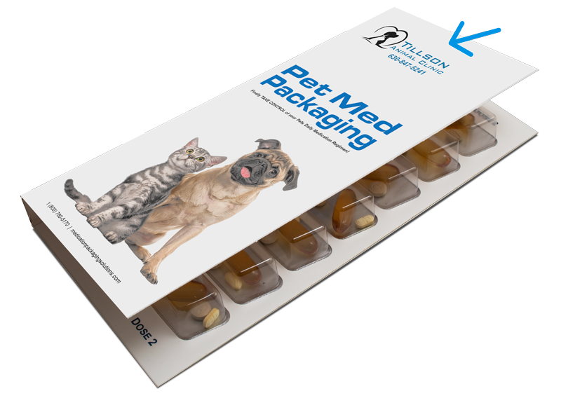 Brand your Veterinary Animal Hospital or Clinic by adding your logo and phone number to your blister card cover.