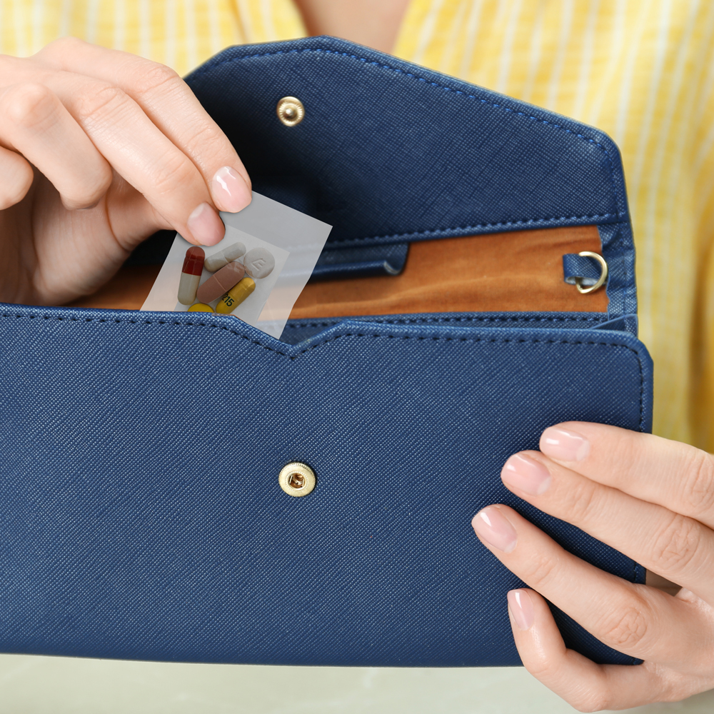 Medication pouch packaging is perfect for people on the go, as these multi-med pouches are easily carried in a pocket or in a purse.