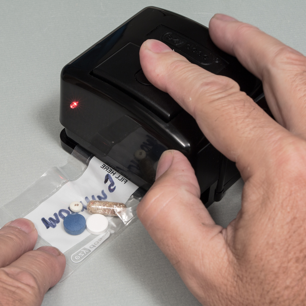 Medication pouch packaging is perfect for people on the go, as these multidose pouches are easily carried in a pocket or in a purse. Each sealed pouch can be labeled as morning, noon, afternoon, evening or bedtime. You’ll be able to quickly produce a one-week supply of pouches. These could be morning and evening pouches or noon and bedtime, or whenever you usually take your medications during the day. These pouches are perforated so they can easily be opened. Our kit makes it easy to quickly fill and seal these medication pouches, the kit comes with an electronic sealer, a filling tray and a roll of 200 pouches. (Purchase additional pouches separately)