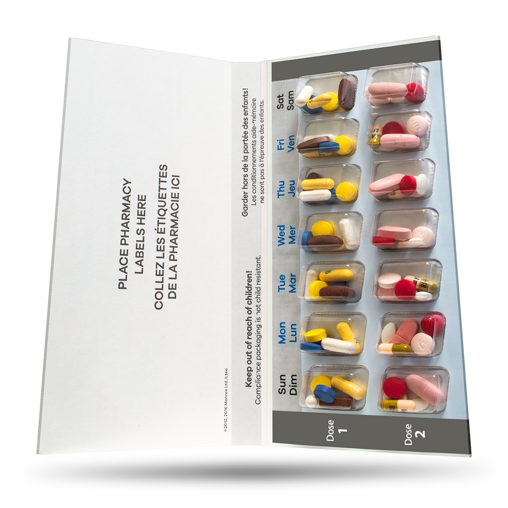 - IMPROVED MEDICATION ADHERENCE – Using this medication packaging solution can drastically improve the life of the patient and provide peace-of-mind for their loved ones or caregivers. This medication packaging is used by consumers and pharmacies around the world because of its simplicity, versatility and effectiveness.