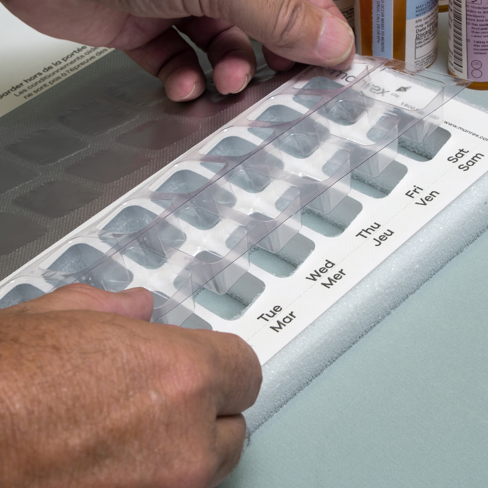 This Manrex 7-Day 2-Pass (2-doses per day) card will help you organize all of your medications for a specific day and time in one blister. If you need to take multiple medications on the same day but at two different times of the day, then this is the perfect medication multi-med card for you. Using this medication packaging solution can drastically improve the life of the patient and provide peace-of-mind for their loved ones or caregivers. This packaging is used by consumers and pharmacies around the world.