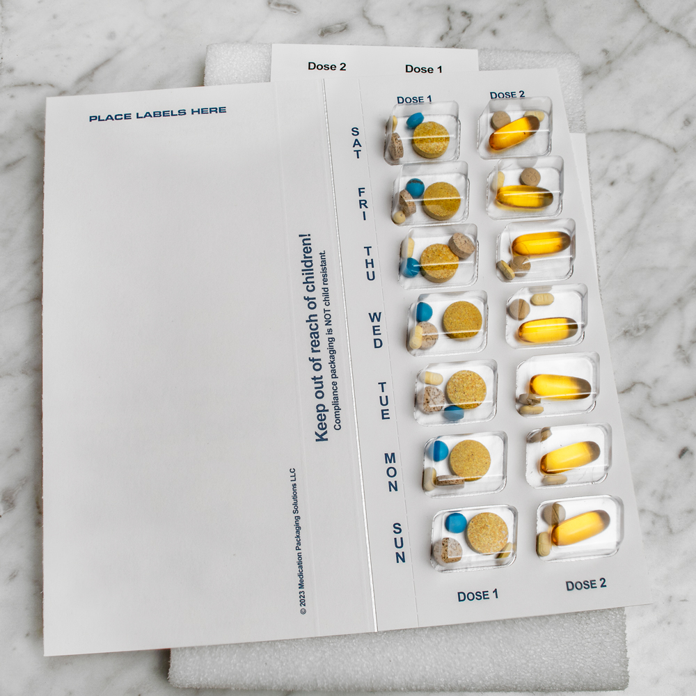- IMPROVED MEDICATION AND SUPPLEMENT ADHERENCE – Using this medication packaging solution can drastically improve the life of your dog or cat and provide peace-of-mind that you’ve given them their medications correctly and on time. For years, this type of medication packaging has been used by pharmacies for people around the world because of its simplicity, versatility and effectiveness. We are now pleased to be able to produce these cards specifically made for our 4-legged friends.