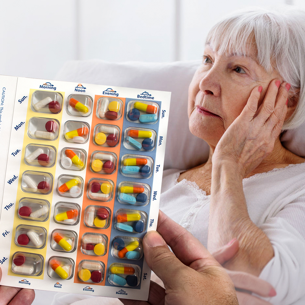 - USED BY SENIORS, CAREGIVERS, SUMMER CAMPS, CARE HOMES AND PHARMACIES AROUND THE WORLD – This is ideal for anyone who struggles with medication compliance. Care givers and family members appreciate Blister Packs because they can evaluate medication compliance at a glance. Each blister can hold a mixture of medications for complete customization in loading. Space provided for medication information or instructions.