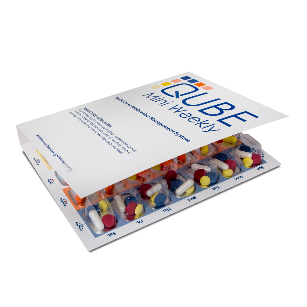 - SIMPLE AND EASY TO USE MULTI-MED MEDICATION BLISTER PACK – This Qube 7-Day 4-pass mini size card will help you organize all of your medications for a specific day and time.