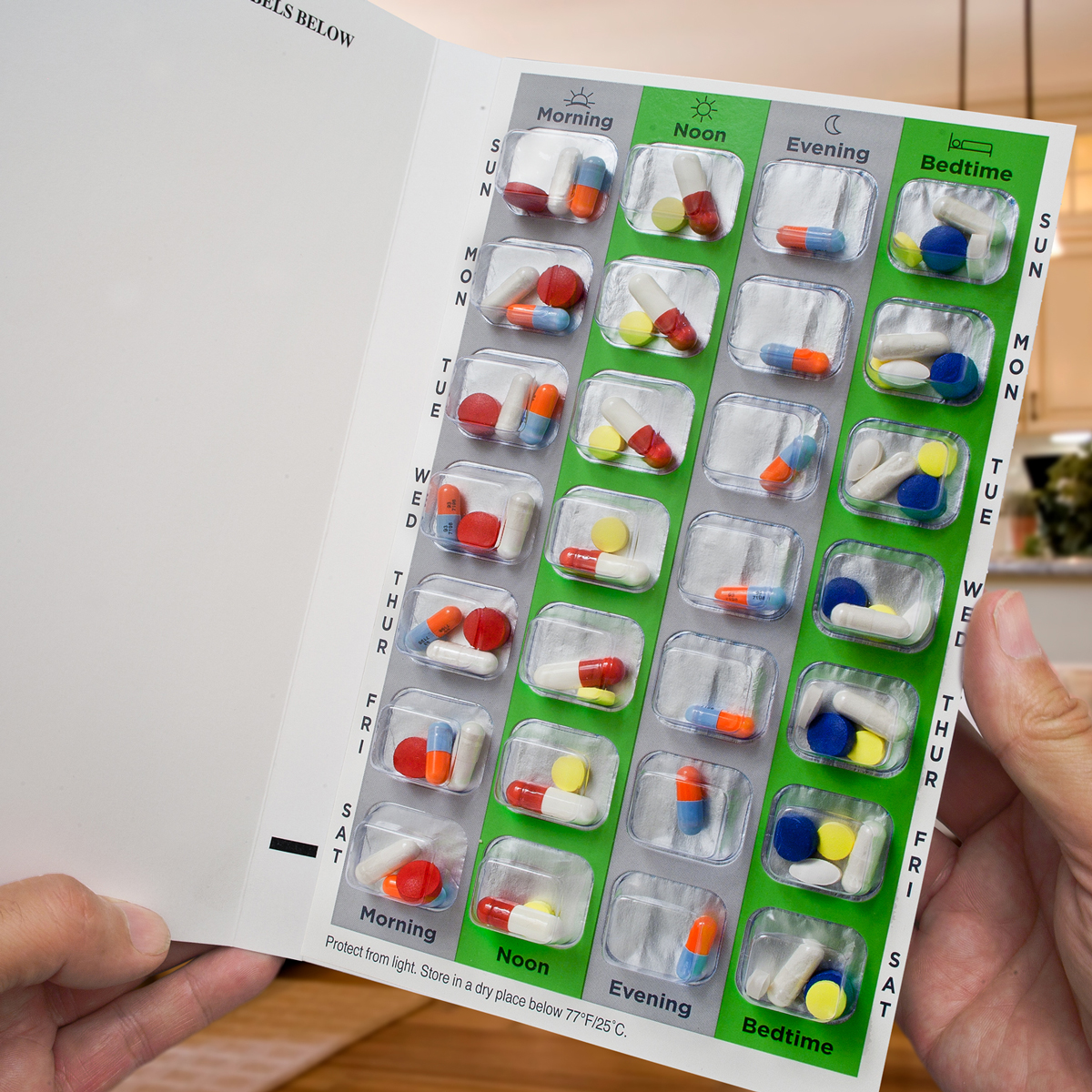 - SIMPLE AND EASY TO USE MULTI-MED MEDICATION BLISTER PACK – This SureMed 7-Day 4-pass card will help you organize all of your medications for a specific day and time.